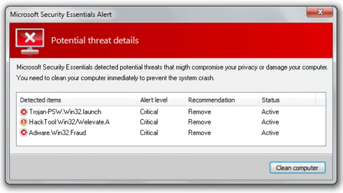 NameChanger's installers have been known to use everything from hacked advertising rings for legitimate instant messengers to hacked websites like DailyMotion.com. Typical attacks include the injection of browser-redirecting content that especially targets Internet Explorer users, forcing their exposure to a fake alert that claims to be part of the Microsoft Security Essentials. The update, of course, doesn't have any kind of real security software, but, instead, is a pathway for NameChanger to compromise your PC. In the process of doing so, NameChanger will display fake system-scanning results and a variety of fake pop-up alerts, all meant to make you buy its registration key.