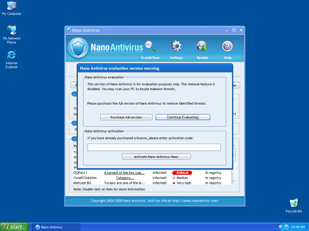 All links provided by Nano Antivirus will most likely redirect you to malicous websites that sell Nano Antivirus as a legitimate spyware remover. Nano Antivirus has the ability to recreate itself after reboot. It is strongly recommended to remove Nano Antivirus from your system upon detection.