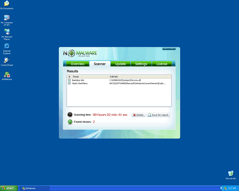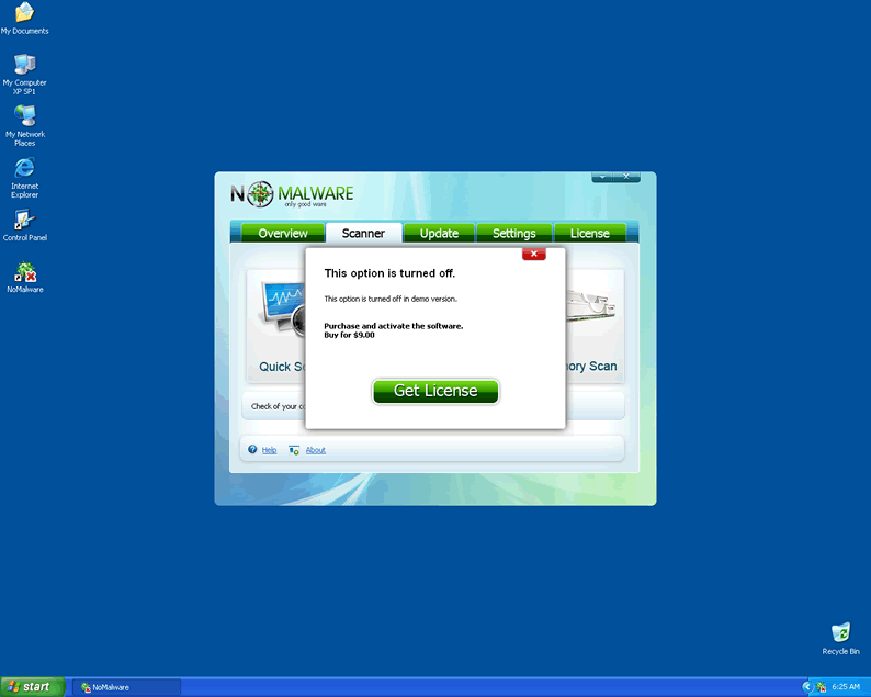 NoMalware (also known as No Malware) is a virus that spreads over the Internet aided by malicious Trojans and rogue computer security websites. NoMalware has been engineered to mislead unwary computer users to purchase the full version of the rogue anti-spyware program. NoMalware uses fake security scans that will alert user of false infections. These false threats are not removable unless the user buys the licensed version of NoMalware. Do not fall for NoMalware's trickery and have the rogue removed from the system using reliable anti-virus software.