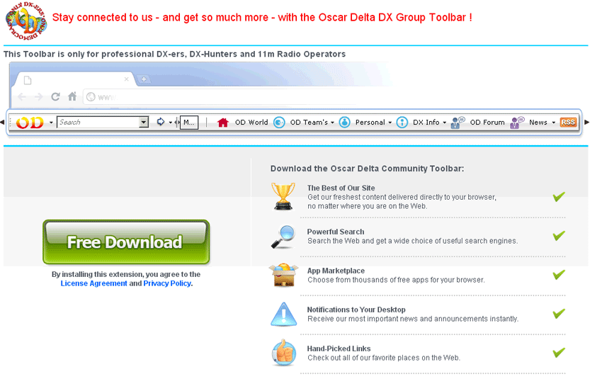 The Oscar Delta Toolbar or, to use its full name, the Oscar Delta DX Group Toolbar, is a radio hobbyist add-on that malware researchers have categorized as a Potentially Unwanted Program. As a PUP, the Oscar Delta Toolbar doesn't pose a major risk to your computer, but the Oscar Delta Toolbar does make settings changes controlling which sites your browser loads and may display advertisements. Deleting an Oscar Delta Toolbar is the safest reaction that you can take to seeing the Oscar Delta Toolbar on your browser, for which purpose the use of a steadfast anti-malware application is heartily suggested.