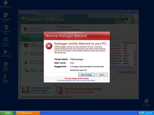 Paladin Antivirus, or PaladinAntivirus, is a rogue antivirus program and product of a blatant cyber scam. Paladin Antivirus enters the computer when a related Trojan infection opens a backdoor to allow Paladin Antivirus entry to the compromised system. Once active, PaladinAntivirus will produce a fake PC scan and results which warn that the computer is infected with malware. These scare tactics are used to convince the unwary computer user to purchase Paladin Antivirus software, for removal of the alleged threats detected. Do not fall for this scam, instead use a reliable anti-malware program to terminate all threats associated to PaladinAntivirus.