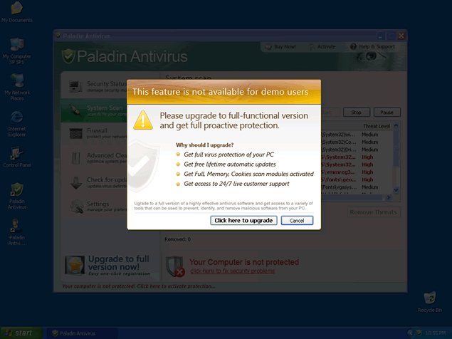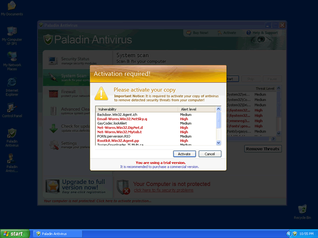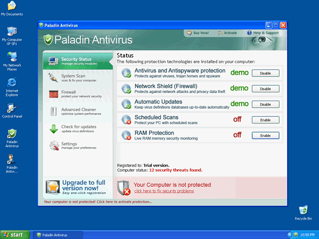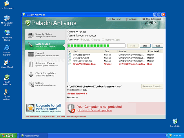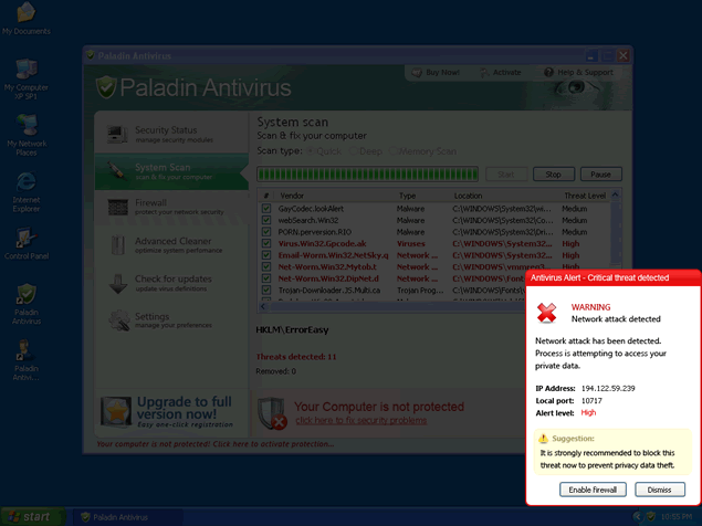 Paladin Antivirus belongs to the FakeCog (CoreGuard) (CoreGuard) family, which includes members such as PC Protection Center 2008, CoreGuard Antivirus 2009, Protection System, Dr.Guard, User Protection, Your Protection, Digital Protection, Data Protection, Protection Center, Defense Center, AnVi, PC Protection Center, Virus.DOS.RogueAntiSpyware, Fraud.Defense Center and Malware Protection Center.