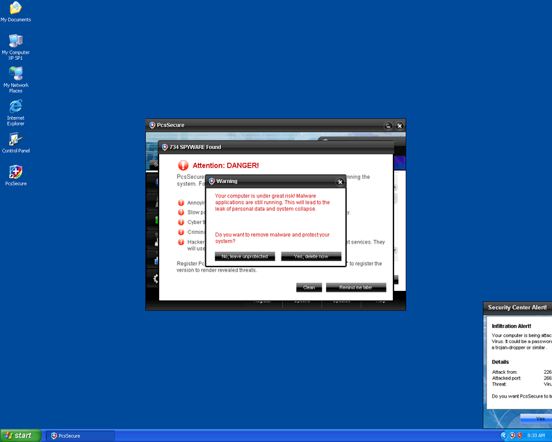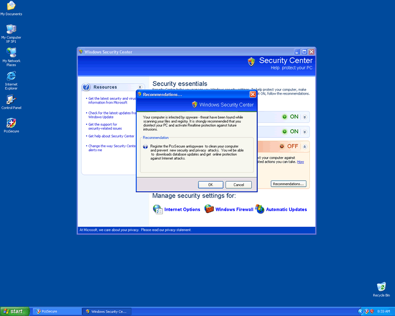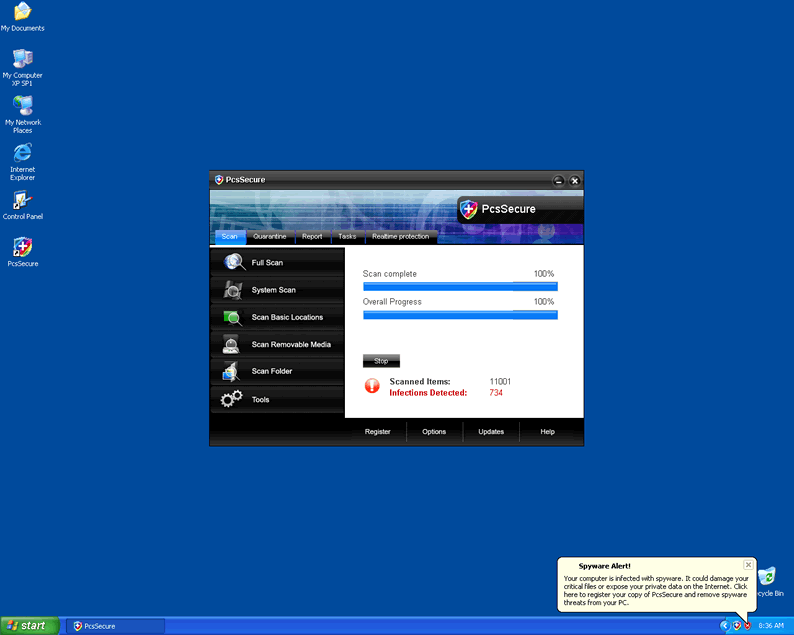 PcsSecure, after installation, will modify system settings, display false popup warning notifications and initiate system scans that return several bogus results. Purchase of PcsSecure is not recommended because it can put you at risk of your credit card information being compromised. It is suggested that PcsSecure be detected and safely removed with an anti-spyware application.