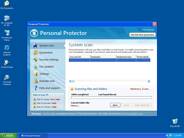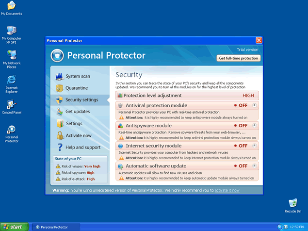 Personal Protector is a rogue security program and clone of the rogue anti-spyware program Personal Guard 2009. Both Personal Protector and Personal Guard 2009 use the same methods of displaying bogus parasite popup alerts and system scan results to scare computer users into buying a full version of the malicious security program, Personal Protector or Personal Guard 2009.