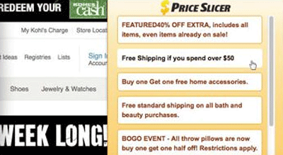 Price Slicer is an adware program that is known for displaying several pop-ups attempting to offer online savings deals and coupons for saving money on popular online shopping sites. The Price Slicer pop-up may redirect users to others sites where some of them may offer other online saving deals. Price Slicer may also change your internet settings loading a certain site as your default home page. Removal of Price Slicer is needed to stop the pop-up alerts.