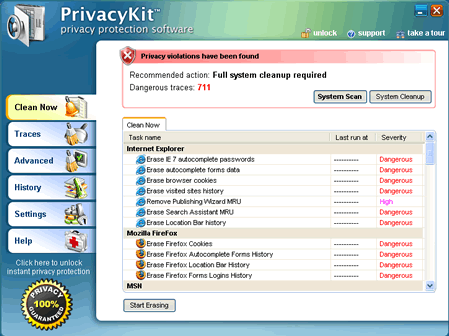 PrivacyKit is a fake PC cleanup program that is often downloaded and installed by Trojans, through browser security exploits, or via other nefarious mechanisms. PrivacyKit program pretends to look like a PC cleanup program, but it's a very nasty program that may tease you with false notifications or alerts in order to buy their software. If you click on the fake system alert, you will have to pay for PrivacyKit program, which will not protect you against spyware, but might actually expose you to more security threats.