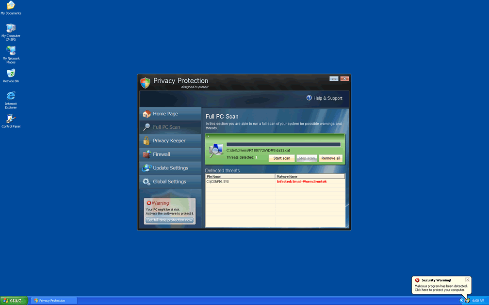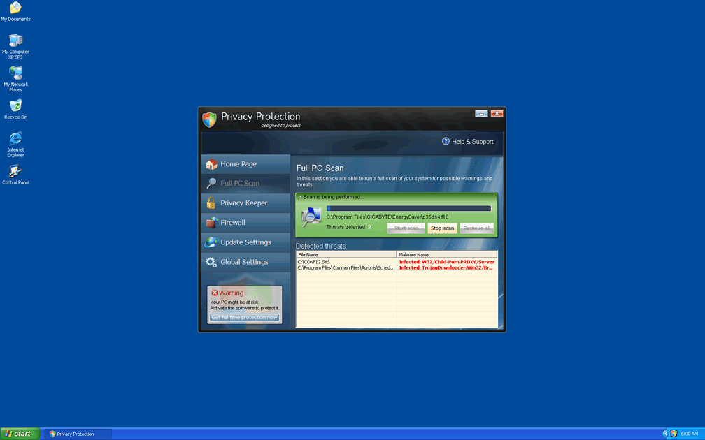 Privacy Protection is distributed by Trojans and malicious websites that specialize in installing rogue security programs. In many cases, you may be presented with an inaccurate warning message that tells computer users that their machine is infected and that they should install Privacy Protection or another type of scamware to remove the infection. To protect your PC from Privacy Protection-related attacks like the ones above, use strong security settings for your browser, avoid suspicious sites and have an active anti-malware to monitor potential drive-by-download intrusions.