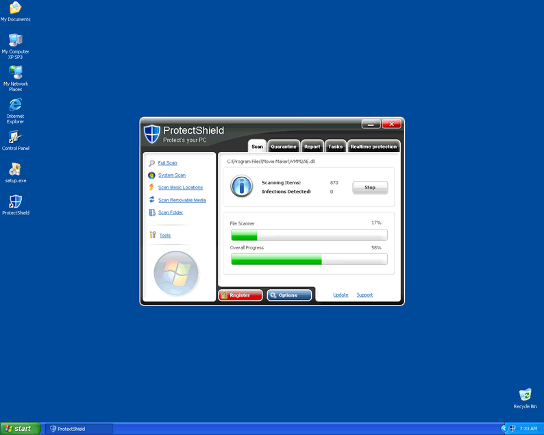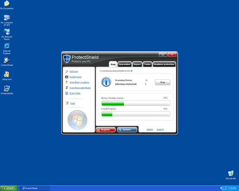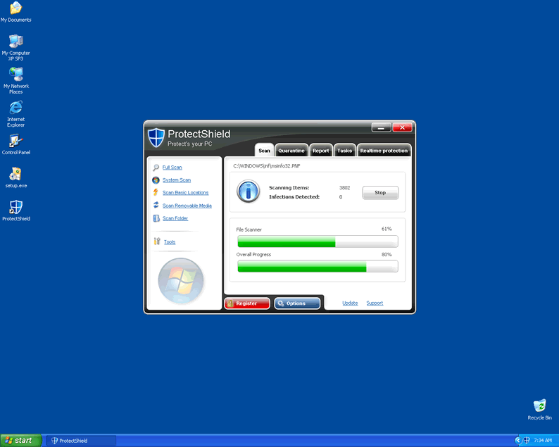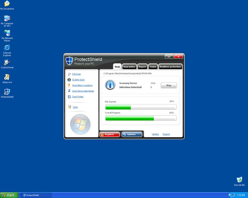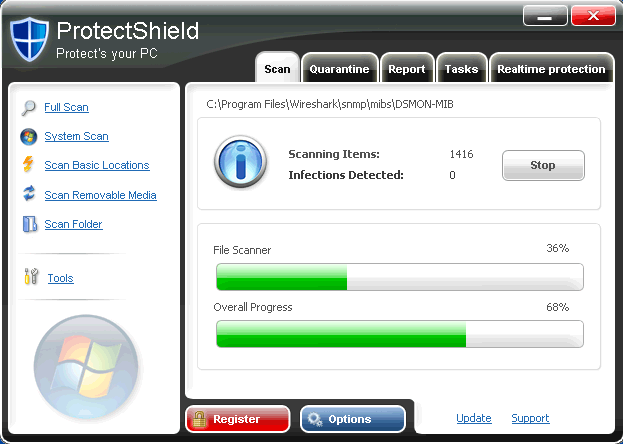 Protect Shield is a rogue anti-spyware program that utilizes Trojan horse parasites to install itself without the knowledge of a computer user. Protect Shield was created with the purpose to extort money through use of its aggressive deceiving techniques. These methods vary from misleading popup alert messages to fake system scan results.