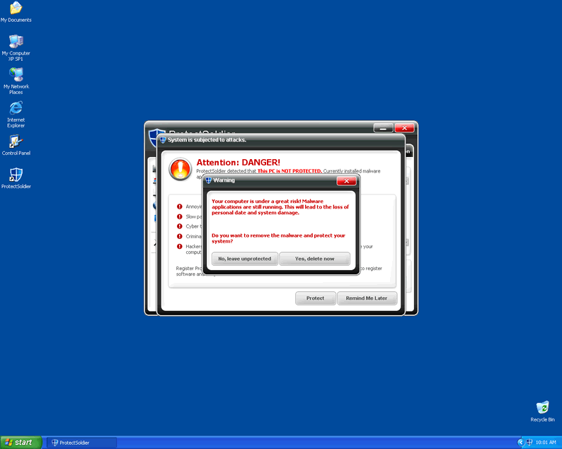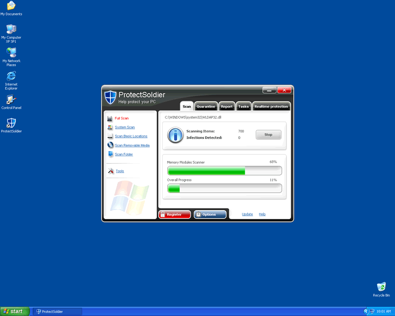 ProtectSoldier does not have the capability of detecting and removing any type of computer parasite therefore it should never be trusted for ridding your system of spyware, malware or any other harmful parasite. Once detected, it is recommended that ProtectSoldier be removed from the system to prevent further damages to the system registry and essential system files.