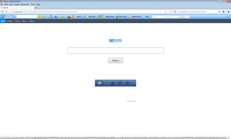 The Realore Studios Toolbar modifies your browser for the purpose of making you conduct all of your Web searches through Conduit's services. While Conduit doesn't expose its visitors to unreliable content deliberately, it may not always provide accurate results and, certainly, shouldn't be considered as trustworthy as major search providers like Google or Bing. Uninstalling the Realore Studios Toolbar through the Windows Control Panel or your browser's add-on manager yields a high chance of its browser modifications remaining intact to continue redirecting you back over to Conduit.com.
