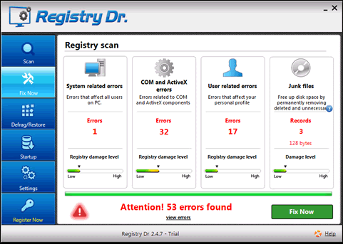 Registry Dr. may launch faux system scans and display bogus security notifications declaring that numerous hard drive errors and security threats have been found on the computer. For removal of the so-called system issues and PC threats, Registry Dr. may encourage the computer user to buy its full version.