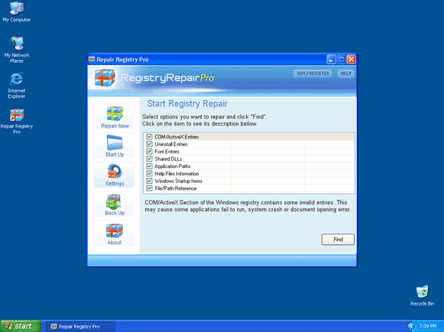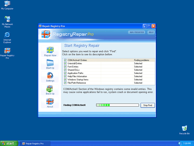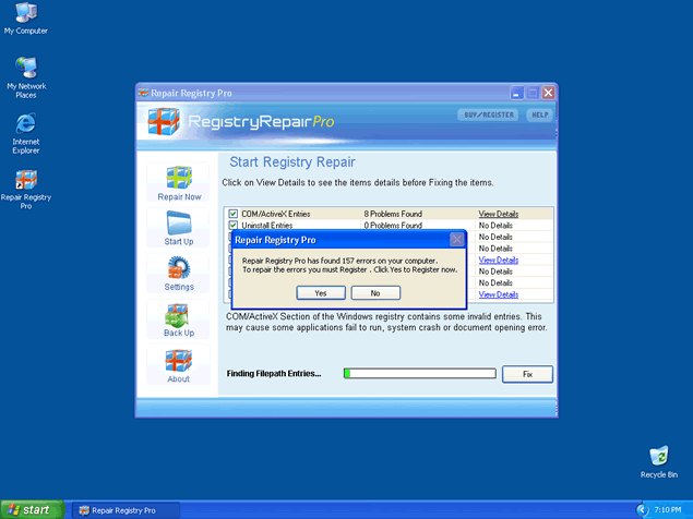 Repair Registry Pro is a fake computer cleanup program. Repair Registry Pro or also known as Registry Repair Pro, is usually installed by a Trojan infection or through a browser security hole. After Repair Registry Pro is installed on your computer it launches at Windows start up and starts annoying you with popups and alert messages trying to get you to purchase the full Repair Registry Pro program.