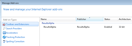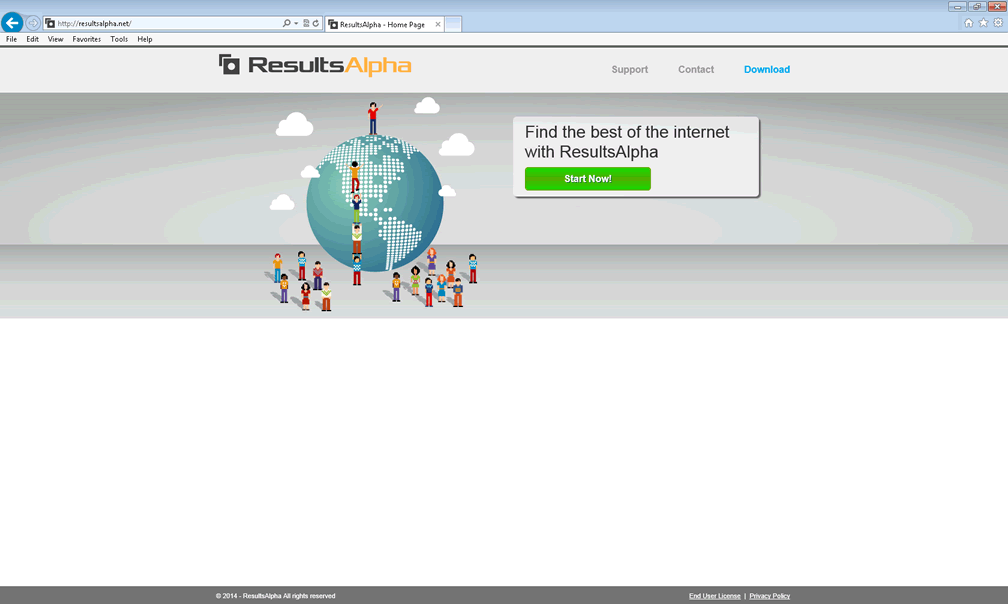 ResultsAlpha is adware that may display random ads or ads based on surfing activity of the computer user. ResultsAlpha pop-up ads may be shown in a new tab page on Internet Explorer, Mozilla Firefox and Google Chrome of the computer, which may be affected by this adware or other potentially unwanted programs. ResultsAlpha pop-up ads may be shown regardless of the Web browser or search engine. If a computer user sees pop-up ads of ResultsAlpha whenever he is making an online search, then the computer may be infected with adware or other PC threats. ResultsAlpha may insert an ad-supported Web browser extension, add-on or plug-in for Internet Explorer, Mozilla Firefox and Google Chrome that may show banners, messages and pop-up advertisements on the PC. ResultsAlpha pop-up ads may be distributed through bundled free applications downloaded from unreliable download websites.