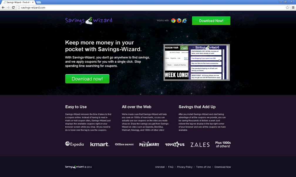Savings Wizard is an adware coupon application that is known to display random ads through online gaming sites. Savings Wizard may offer coupon saving deals while it loads offers and redirects to other unwanted sites. Use of Savings Wizard is not recommended as it could lead to several unwanted sites that may eventually cause issues with your computer. At times Savings Wizard may change your default internet settings loading up another site as your default home page. Removal of Savings Wizard will eliminate the unwanted redirects.
