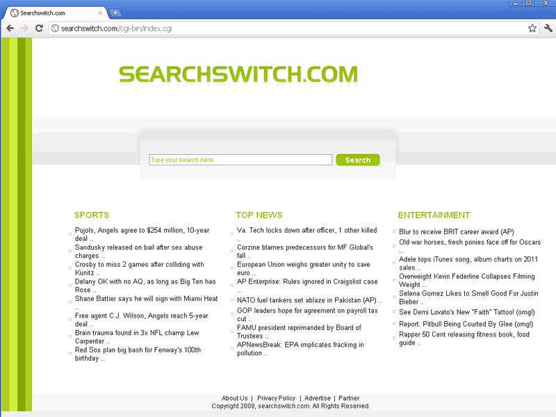 SearchSwitch.com might pretend to offer a search engine as well as news tidbits, but its reason for infamy is its propagation of browser hijackers. Browser hijacks will show themselves primarily by redirecting you to SearchSwitch.com and equally-harmful sites, although other types of side effects, such as pop-ups and issues with your browser's settings, may also appear. You should never try to remove a browser hijacker that redirects to SearchSwitch.com by deleting your browser or changing to a new browser, since baseline Windows components will remain infected.