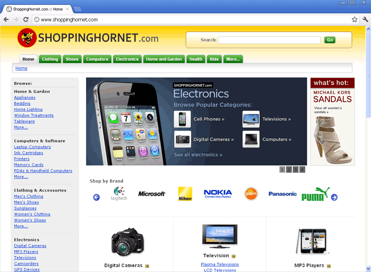 Shoppinghornet.com creates an unusually well-built interface that makes Shoppinghornet.com look like a helpful site for shopping purposes, but while Shoppinghornet.com goes a step above for deception, Shoppinghornet.com's real functions aren't any better than that of a minimalist fake search engine.