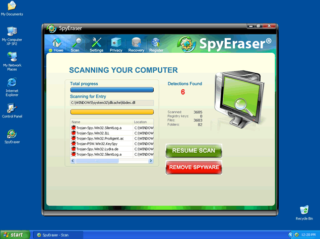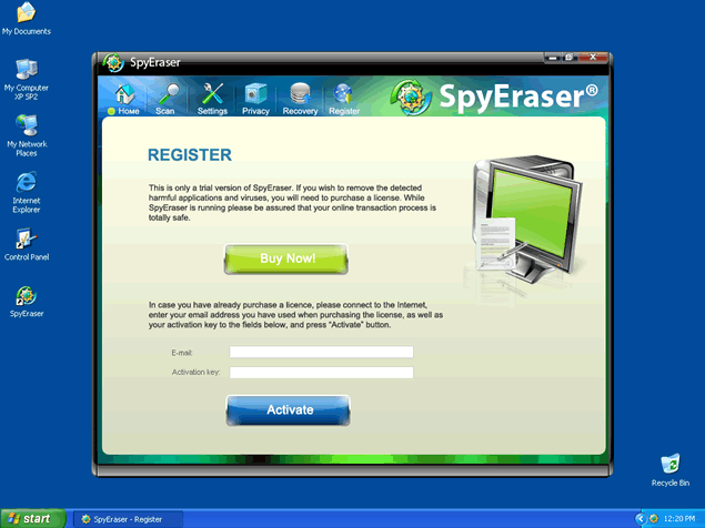 SpyEraser is a dubious anti-spyware program which attempts to knock people over. SpyEraser spreads by using backdoor functionalities which is mostly done with the help of Trojan viruses. SpyEraser, the rogue application, runs from the System32 directory which other rogues have known to run from the Program Files folder. The Rogue program SpyEraser is not related to the application called SpyEraser from Uniblue Systems.