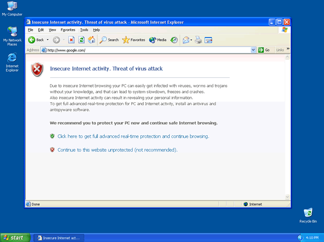 - Browser redirects that block off safe websites with fake error messages about unsafe content.