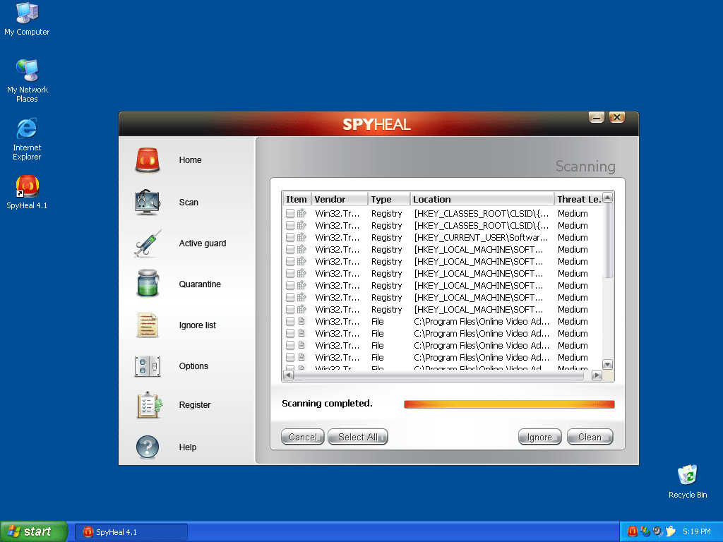 SpyHeal is the latest version to come out from the makers of SpywareQuake, SpyFalcon, SpyAxe, and SpywareStrike. SpyHeal is a rogue anti-spyware program that is believed to be the replacement of SpywareQuake (or Spy Quake). Through deceptive security messages that resemble system alerts, SpyHeal tricks the user into purchasing the full version of the software.