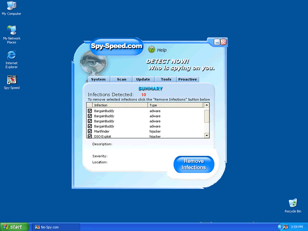 SpySpeed is a fake anti-spyware program that is usually downloaded and installed through a Trojan infection. SpySpeed uses certain tactics and deceiving popup messages to get computer users to purchase the full SpySpeed program. SpySpeed is very difficult to remove and requires an anti-spyware removal program to completely remove it.
