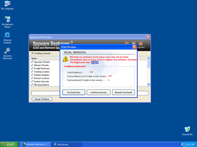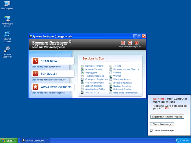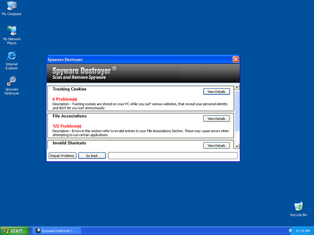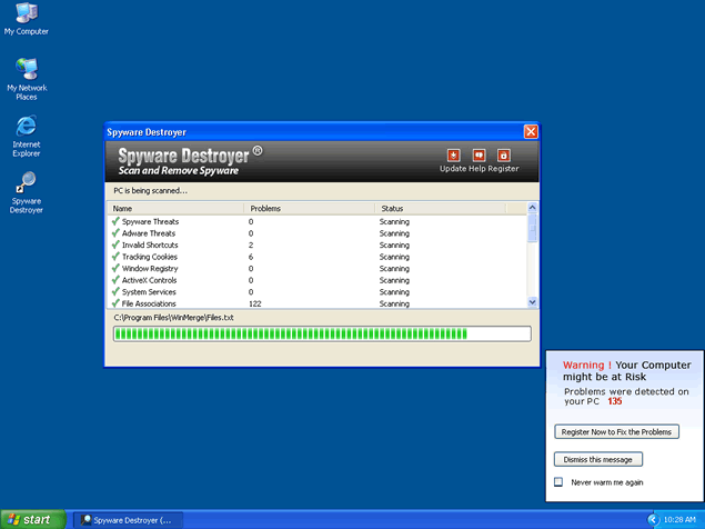 Spyware Destroyer, or SpywareDestroyer, is a fake anti-spyware tool. Typically once Spyware Destroyer is installed on your PC, you start to get several fictitious alert messages or popups that warn you of parasites infecting your computer. You must not fall for this fake messages because it is designed to force you into purchasing the full Spyware Destroyer program.