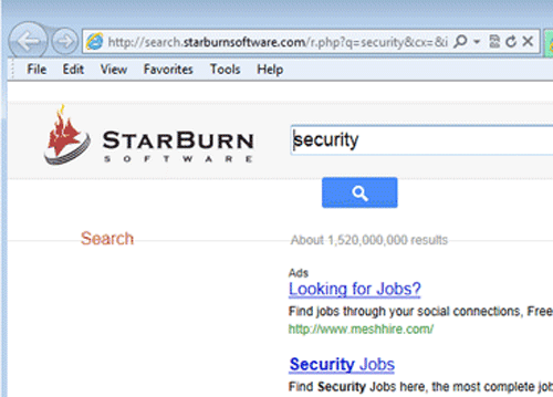 - Having your searches redirected to search.starburnsoftware.com. Consequently, this also may block your ability to use any other search sites.