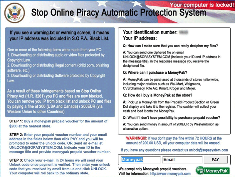 Stop Online Piracy MoneyPak Virus (Ransomware)