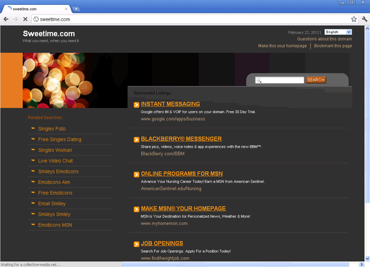 Sweetime.com doesn't exhibit any signs of being anything more than a questionable search engine site, and, in fact, even borrows its visual appearance from a widely-recycled template that's also used by such sites as Topdoafinder.com. This lazy design also extends to Sweetime.com's marketing presence on the web, which, as SpywareRemove.com malware researchers note, only exists at all in a negative sense – due to Sweetime.com being promoted by browser hijackers. Sites that are identical to Sweetime.com have also been noted for their inability to provide real or independent search results, and you may want to be careful around sites that are promoted or linked by Sweetime.com.
