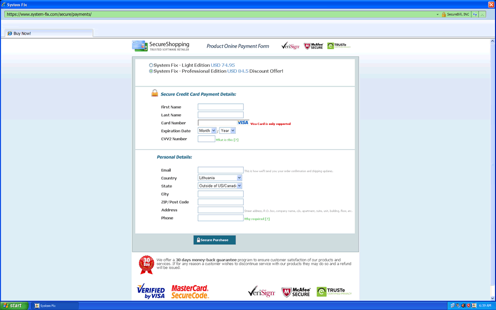 As long as you remove System Fix from your PC with a good anti-malware scanner, as quickly as possible, permanent damage to your files or to Windows can be averted. However, if you've given up your credit card to System Fix's machinations, SpywareRemove.com malware analysts strongly encourage you to speak with your credit card company about canceling it – this will prevent additional charges that will continue to waste your money and potentially even harm your credit rating.