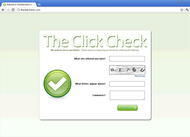 Theclickcheck.com has also had an extra level of distrust slapped onto its reputation by the presence of browser hijackers that redirect web browsers to Theclickcheck.com whenever search engine websites (AKA Google, Bing, Yahoo Search, etc) are accessed. Although avoiding these types of sites can, in the short term, allow you to avoid redirects to Theclickcheck.com, SpywareRemove.com malware research team recommends complete removal of browser hijackers whenever their redirect attacks are noticed. Failure to do this can also endanger your PC with other attacks that may or may not leave visible symptoms, since PC threats that are related to Theclickcheck.com redirects are often identified as multi-functional rootkits or Trojans.