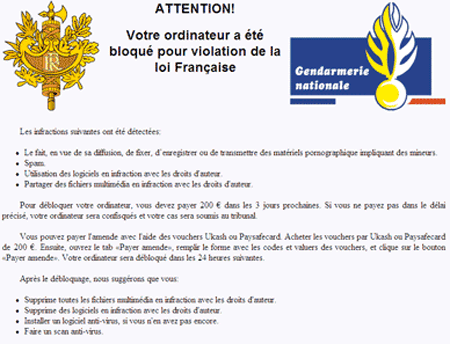 TROJ_RANSOM.BOV is a hazardous Trojan and component of ransomware that spreads via Laduree.fr, the website of a well-known confectionery company located in France. Laduree's web page was compromised for infecting PC users' systems with ransomware, which is detected as TROJ_RANSOM.BOV. TROJ_RANSOM.BOV poses as messages from the National Gendarmerie (in French: Gendarmerie nationale), commonly known as the French Police Force. TROJ_RANSOM.BOV shows a window that covers the full desktop and asks to make a payment. Apart from targeting French PC users, who visited the Laduree website, there were also several malware infections noticed in Japan. Laduree pastries are popular among the Japanese; actually, the Laduree website only translates to French, English and Japanese. To keep your PC safe, remove TROJ_RANSOM.BOV as early as possible.