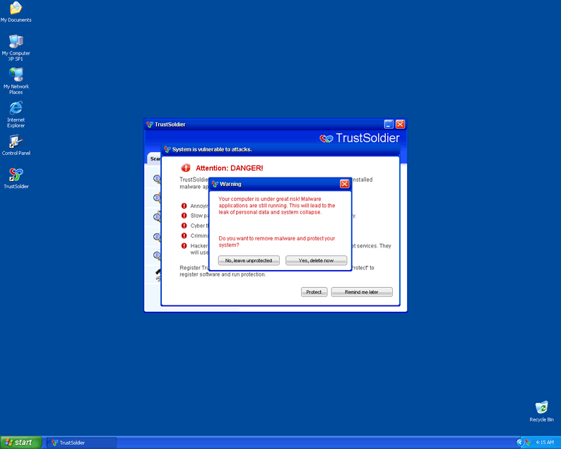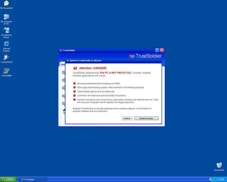 Trust Soldier is a critical rogue software program. Regardless of its name, Trust Soldier can't be trusted by computer users. This particular application would only result in a big number of unwanted computer issues, invade user's privacy as well as try to steal hard earned money. Trust Soldier would try every single trick that it could to try and persuade a user that a computer has serious dangers running on it. This is all done with an aim to try to persuade a user to purchase the whole version of Trust Soldier.