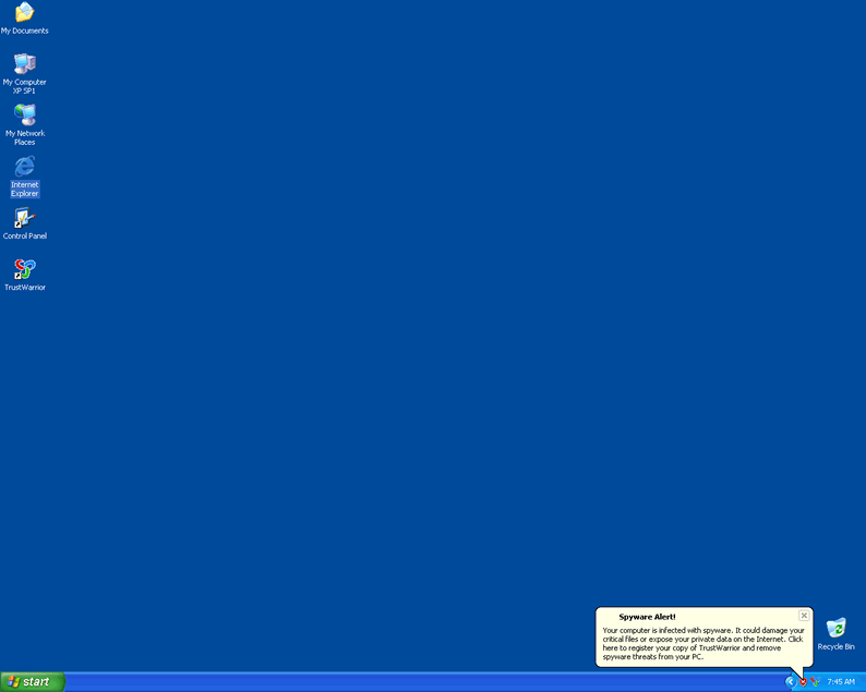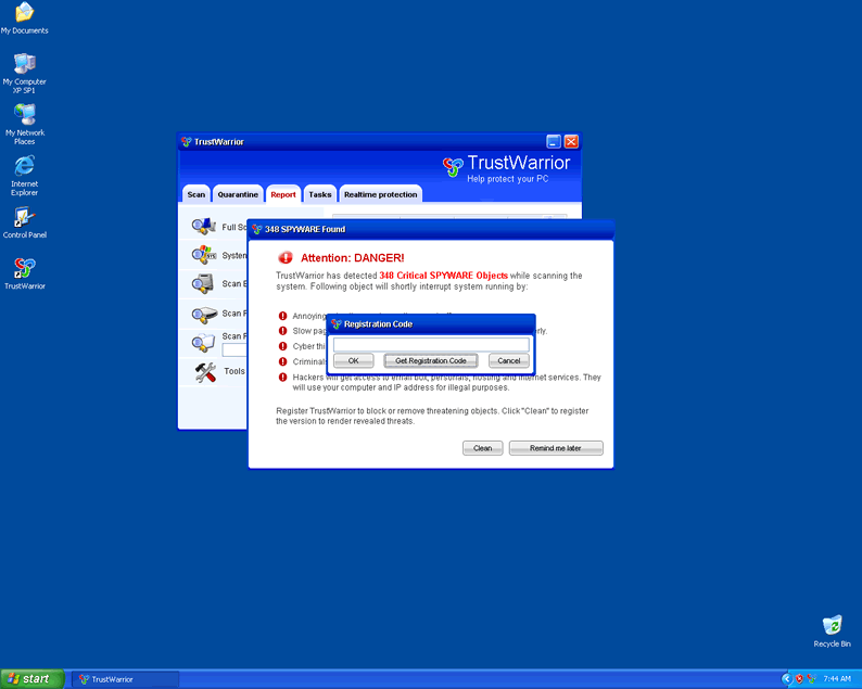 TrustWarrior is a fake anti-spyware program that uses aggressive techniques to trick computer users into purchasing a full version of the TrustWarrior application. TrustWarrior comes from the same family of rogues SoftSafeness and WiniGuard. TrustWarrior, after installed, is able to display a multitude of fake alert messages and conduct system scans that return fabricated results. TrustWarrior will not detect or rid your system of spyware. Detection and removal of TrustWarrior has proven to be difficult to perform manually in many cases.