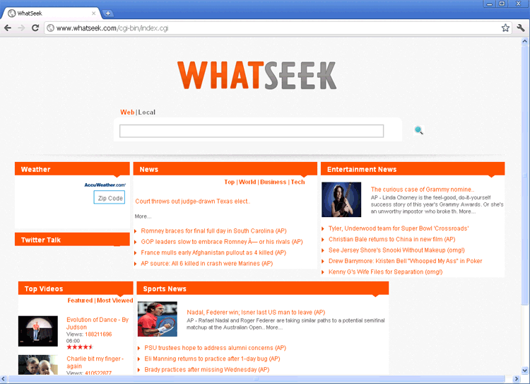 Whatseek.com is a search engine that offers links to sites for the sake of its own bottom line instead of giving you links that are truly-related to your search terms. Although this is just enough to label Whatseek.com as a nuisance instead of as an outright danger to your PC, Whatseek.com has a history of using browser hijackers to redirect visitors to its site from unrelated websites. These redirect attacks make Whatseek.com and everything that comes with Whatseek.com a very direct hazard for your computer's web-browsing safety, and it's recommended that you scan your PC with a trustworthy security program after any contact with Whatseek.com (whether it's through a redirect or through other means).
