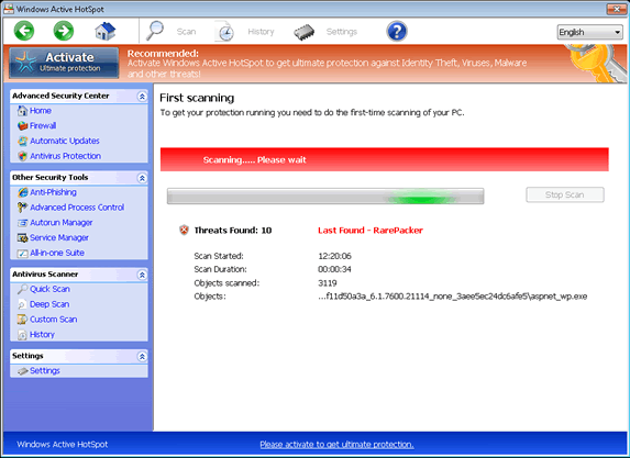 With a new name for an old PC security hoax, Windows Active HotSpot acts as if Windows Active HotSpot is a completely separate product from the previous scamware Windows Active HotSpot is cloned from, but has no real major deviations from its all-too-numerous ancestors. Others based on the same family design include, among others Privacy Guard Pro, Extra Antivirus, Fast Antivirus 2009, Presto TuneUp, Windows Security Suite, Smart Virus Eliminator, Packed.Generic.245, Volcano Security Suite, Windows Enterprise Suite, Enterprise Suite, Additional Guard, Live PC Care, PC Live Guard, Live Enterprise Suite, Security Antivirus, My Security Wall, CleanUp Antivirus, Smart Security and PrivacyGuard Pro 2.0. Windows Active HotSpot and its relatives often are installed by specialized Trojan downloaders which may be distributed through compromised advertisement networks and toxic/hacked websites.