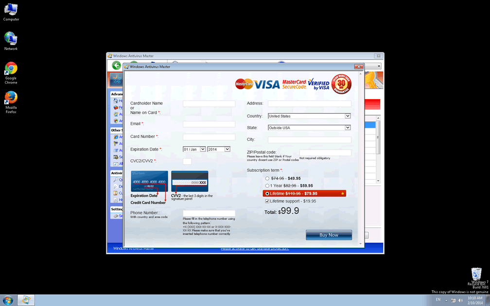Windows Antivirus Master is a member of a noted and often-updated family of fake anti-malware products. Identified by the name FakeVimes, and bearing a strong resemblance to the similar FakeVimes family, this collection of useless products attempts to mislead its victims with fake warnings about threats to encourage the purchase of its premium software. Premium versions of Windows Antivirus Master and other fake AV programs from its family are equally unable to provide any real security features. However, malware researchers find it safe to fake the registration of these products with a variety of freely-distributed keys whenever they're available.
