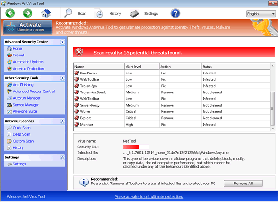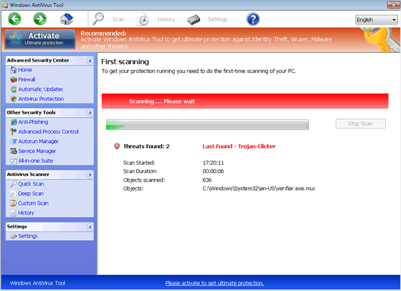 While Windows AntiVirus Suite claims to offer 'ultimate protection' in the form of a process manager, anti-malware scans, phishing defenses and other PC security features, Windows AntiVirus Suite's real functions are meant to inhibit real PC maintenance. Windows AntiVirus Suite persistently detects fake threats, including high-level ones that resemble the alerts of real anti-malware products, and may take additional steps to block other programs. Although Windows AntiVirus Suite will claim that its invasive functions are intended to protect your computer, malware researchers have confirmed that Windows AntiVirus Suite is simple scamware and has no benefits, either before or after purchase.