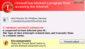 | 3 | Firewall has blocked a program from accessing the Internet Internet Explorer C:\Windows\system32\iexplore.exe is suspected to have infected your PC. This type of virus intercepts entered data and transmits themto a remote server. |