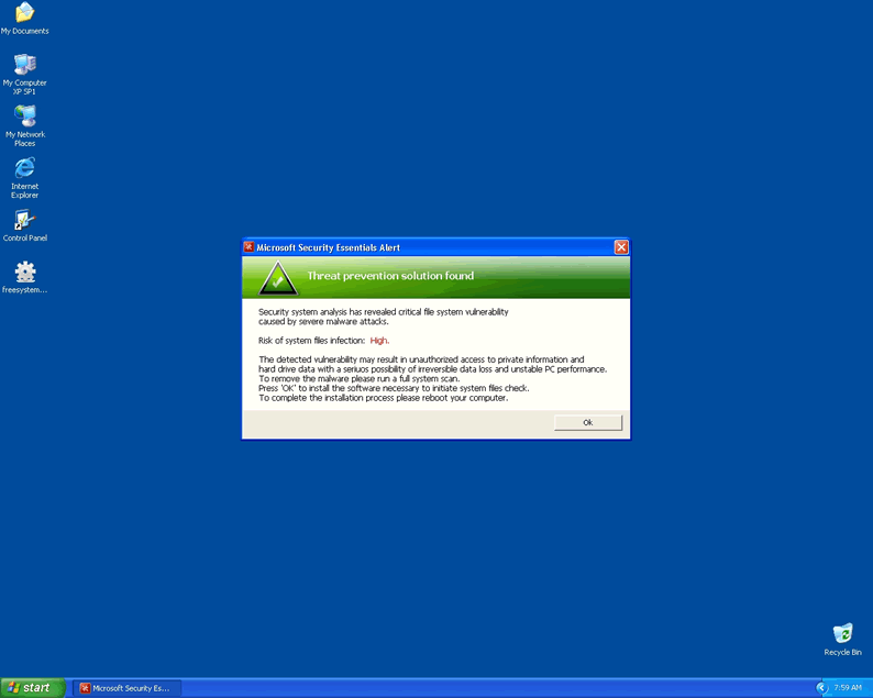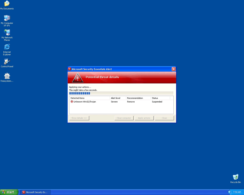 Microsoft Security Essentials detected potential threats that might compromise your privacy or damage your computer. Your access to these items may be suspender until you take an action.