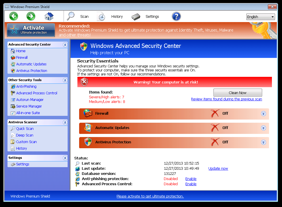 - Of course, Windows Premium Shield is particularly identified by its fraudulent system warnings, scans and general appearance as a supposed anti-malware program. While these 'features' are intended to make you spend money on it, Windows Premium Shield only can provide inaccurate system information, and malware experts don't suggest spending any money on Windows Premium Shield whatsoever.