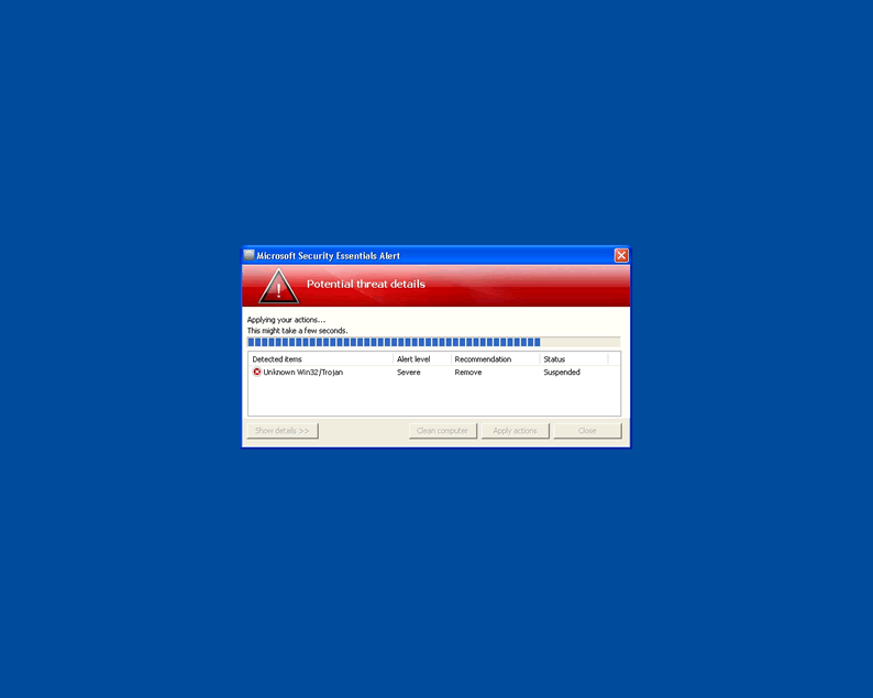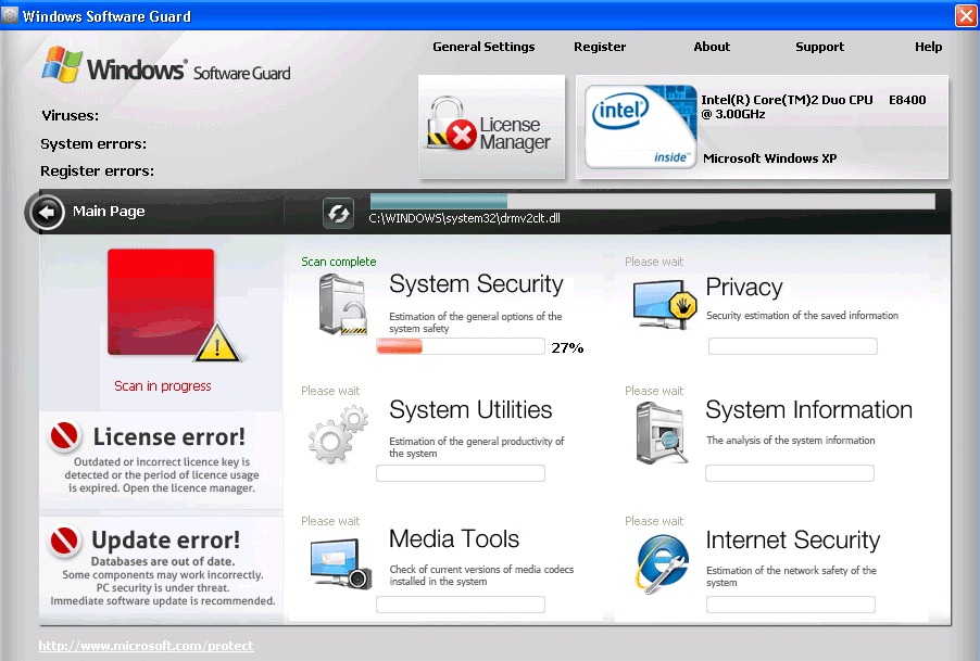 Windows Software Guard infects systems indirectly, primarily by using the fake Microsoft Security Essentials Trojan. This Trojan attempts to slip onto your system undetected, and will create false alert messages that attempt to pass themselves off as being from Microsoft or otherwise having legitimacy. The key to spotting this Trojan is to notice the point at which it tries to recommend a rogue. The false alarm messages look like the following: