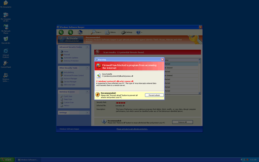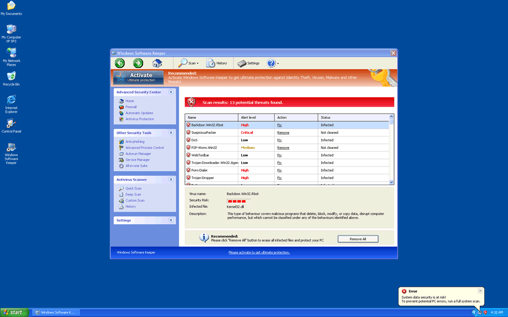 Because Windows Software Keeper is just a new copy of old scamware products that use similar attacks with different names, SpywareRemove.com malware researchers also suggest that you be cautious around any application that closely resembles Windows Software Keeper. Some of Windows Software Keeper's confirmed clones include Privacy Guard Pro, Extra Antivirus, Fast Antivirus 2009, Presto TuneUp, Windows Security Suite, Smart Virus Eliminator, Packed.Generic.245, Volcano Security Suite, Windows Enterprise Suite, Enterprise Suite, Additional Guard, Live PC Care, PC Live Guard, Live Enterprise Suite, Security Antivirus, My Security Wall, CleanUp Antivirus, Smart Security and PrivacyGuard Pro 2.0.