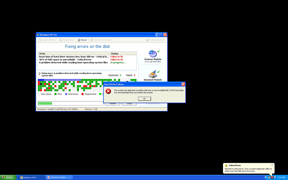 Hard drive critical error. Run a system diagnostic utility to check your hard disk drive for errors. Windows can't find hard disk space. Hard drive error.12 Critical Error!