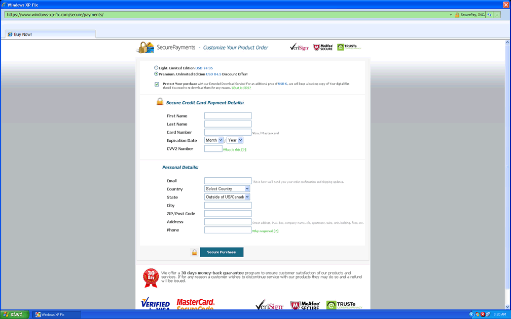 These highly-alarming errors, thankfully, have no grounding in reality, and any negative results that appear to come from Windows XP Fix-detected infections is coming actually from Windows XP Fix itself. Avoid Windows XP Fix's repetitive tries at forcing you to purchase a full version of Windows XP Fix to 'cure' these problems, since such an action would only give your credit card information to criminals.