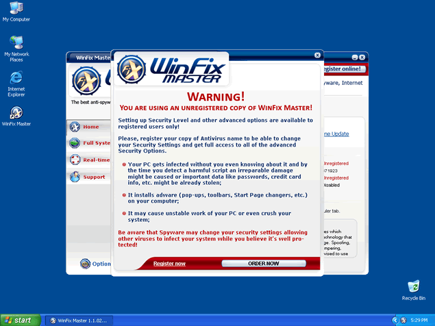 WinFix Master, or WinFixMaster, is a rogue anti-spyware application designed to scare you into purchasing WinFix Master's full version. WinFix Master may use false scans alleging to "detect" spyware threats, which is only a trap to make you believe your computer is in danger. WinFix Master is often downloaded and installed with the help of a ZLOB/MediaAccess Codec installer found on adult websites. WinFix Master can also be installed manually from WinFix Master's website, where WinFix Master's commercial version is promoted and sold as a legitimate software.