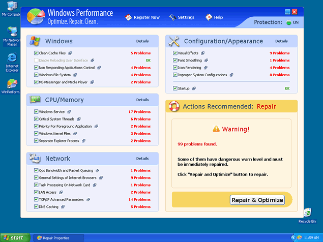 WinPerformance is a rogue anti-spyware application. WinPerformance is often brought to your computer by a Trojan Zlob, which exploits weak points in browser security systems. Once Zlob is installed in your system, WinPerformance will perform a scan that will result in exaggerated threat reports. WinPerformance will then repeatedly offer you to eliminate the threats it "found" if you purchase the non-existent full version of the program.
