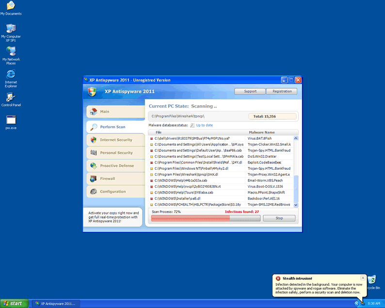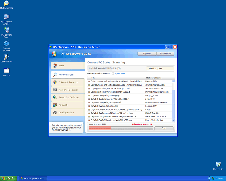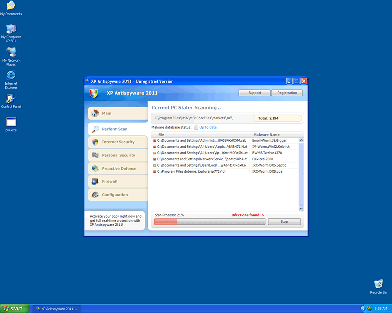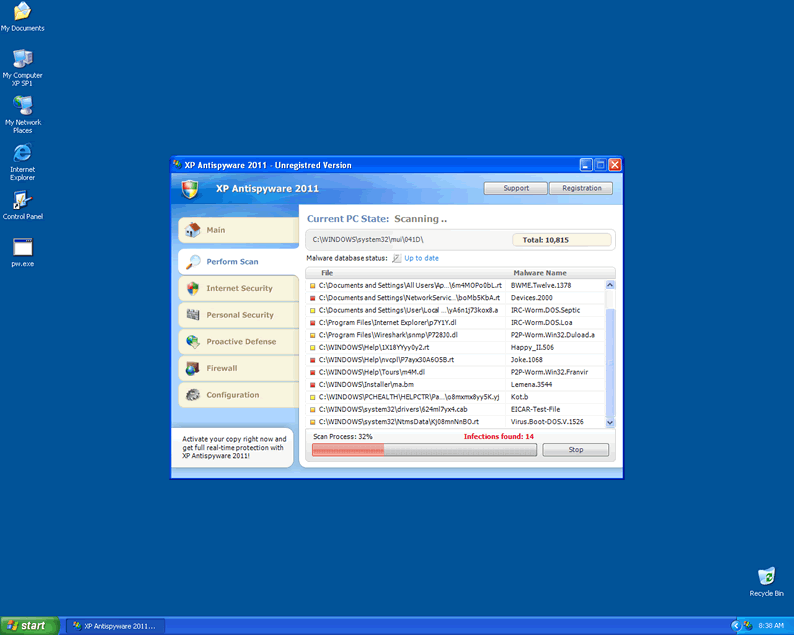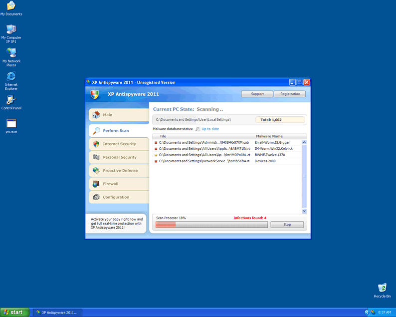 Here are some of the possibilities XP Antispyware 2011 may show you, keeping in mind that they will occur regardless of your PC's health or lack thereof: