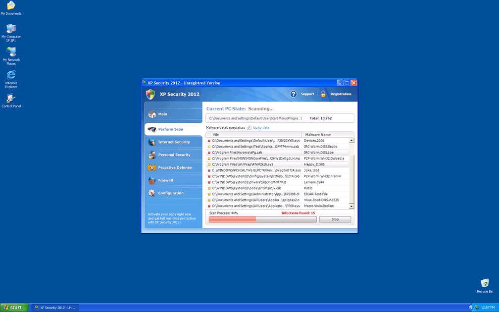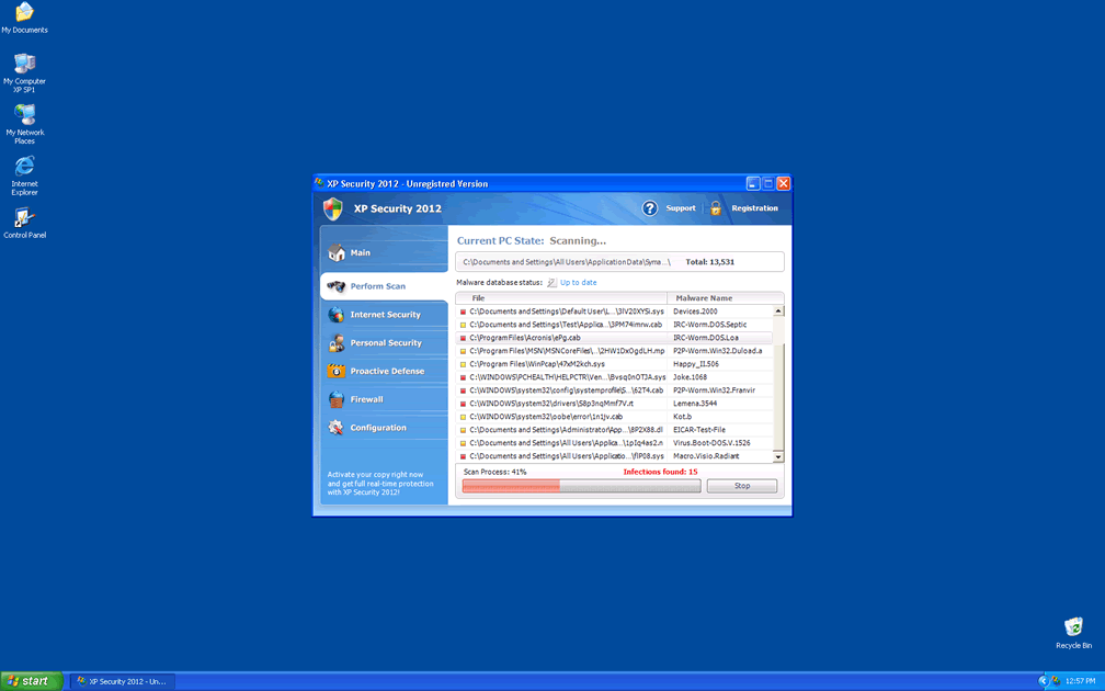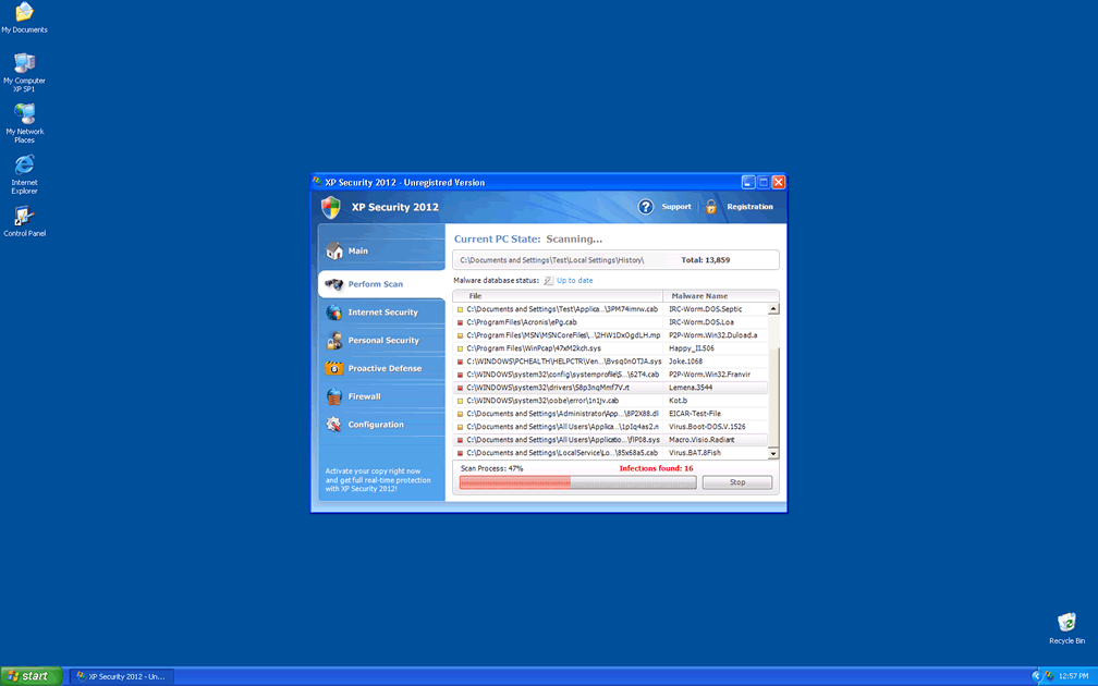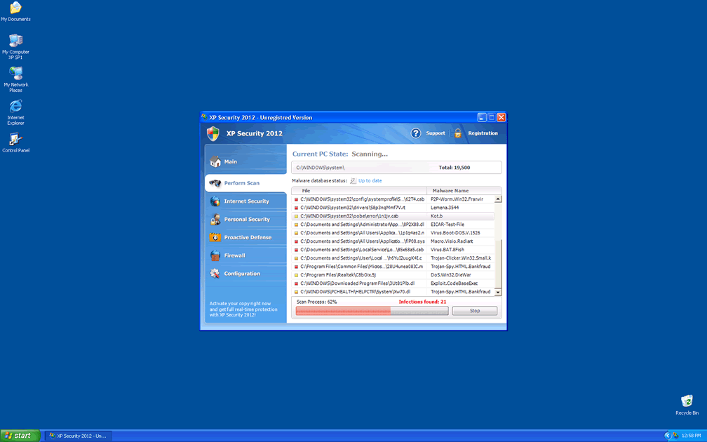 XP Security 2012's anti-virus and security features are all fake, but XP Security 2012 does have real features that work perfectly well. Sadly, these functions are all related to attacking your PC or stopping you from removing XP Security 2012.