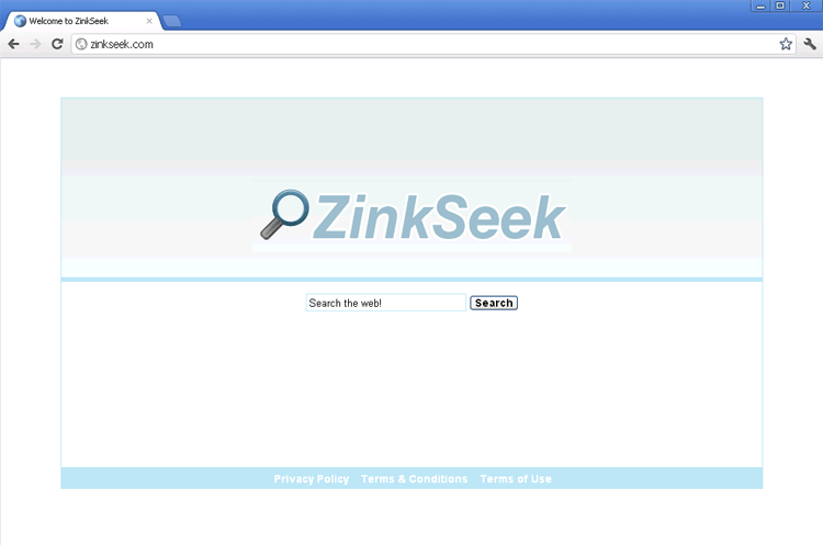 ZinkSeek.com is a fake web search system used to increase traffic of this bogus website and other web pages related to it. ZinkSeek.com is associated with Trojans, rootkits and browser hijackers such as ZeroAccess rootkit and Google Redirect Virus. These malware threats may include a malicious code which targets a web browser. They can hijack your web browser and change default homepage. These malware threats can also change your search results on any major search engine and redirect you to ZinkSeek.com or other dubious and advertising websites. Malware infections linked to ZinkSeek.com may display annoying pop-up ads and slow down your PC. To avoid ZinkSeek.com web-navigation problem, you need to remove all malware infections connected with this fraudulent search engine.
